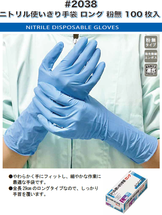 #2038 ニトリル使いきり手袋 ロング 粉無し