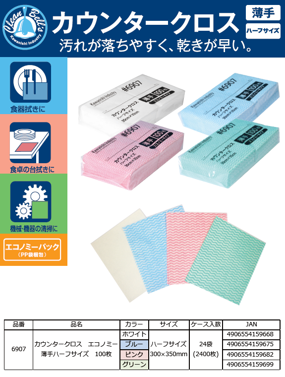 #6907 カウンタークロスエコノミー薄手 ハーフサイズ